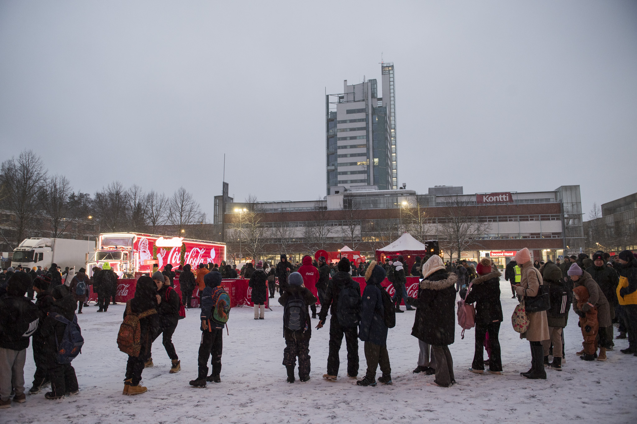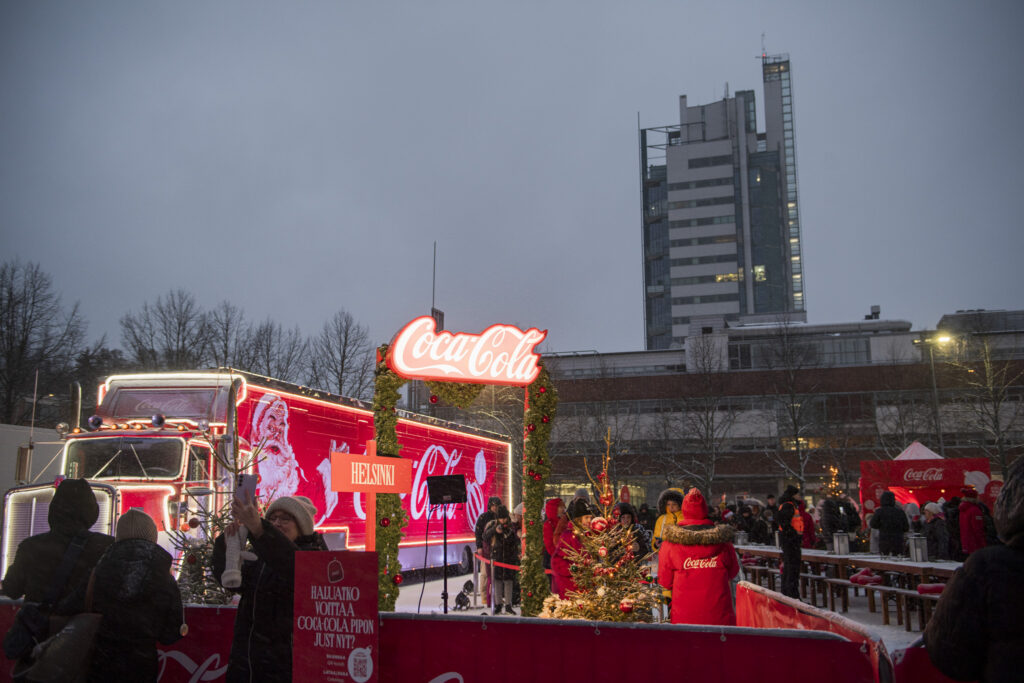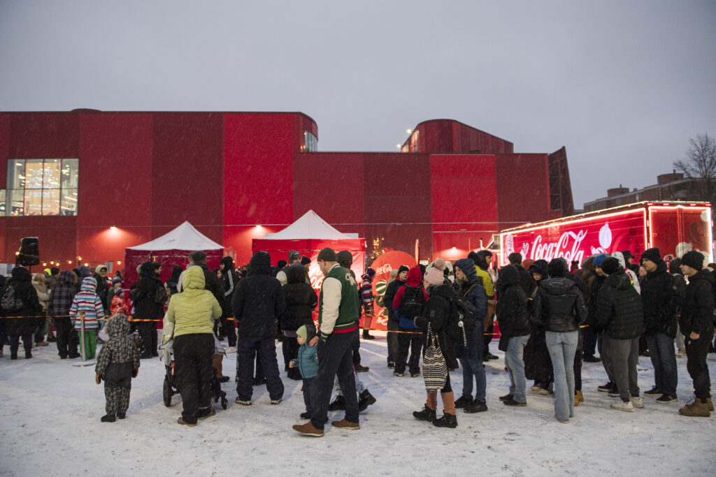 Kuudetta kertaa Suomea kiertävä Coca-Colan joulurekka houkutteli kauppakeskus Eastonin parkkialueelle satoja ihmisiä heti saavuttuaan. Sokeritonta Coca-Colaa jonotettiin koko perheen voimin lumisateen keskellä. Aiempien vuosien tapaan nelituntiseen joulutapahtumaan osallistuvat poseerasivat ikonisen punaisen rekan edustalla.