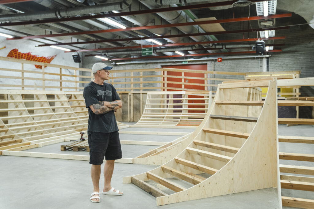 – Täällä oli alusta alkaen skeittareita Roihuvuoresta ja muualta idästä, ja seuran puolelta autoimme esimerkiksi tarjoamalla varastotiloja työkaluille, sähköt työhön ja yritimme olla virallisena osapuolena kaupungin kanssa toimiessa, Mikkelä kertoo.
