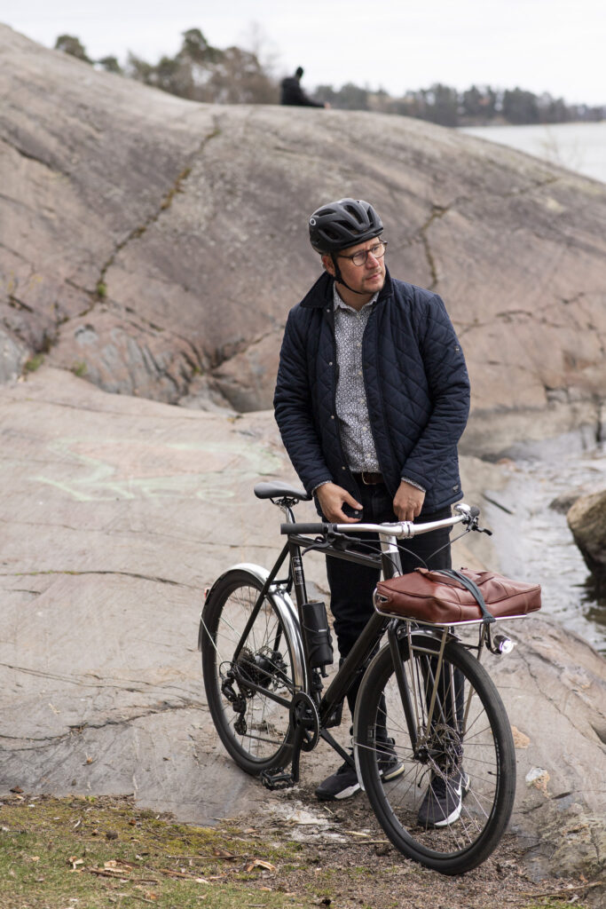 Kilometrit Mikonkadulta kohti Korkeasaarta ja Laajasaloa jäivät nopeasti taakse. Normaalisti ylämäet ja vastatuuli olisivat jo hidastaneet vauhtia. Nyt sellaisesta ei näy merkkiäkään. Pitkään pankissa työskennellyt mies näyttää siltä kuin olisi saapunut paikalle suoraan työpaikan hissistä.